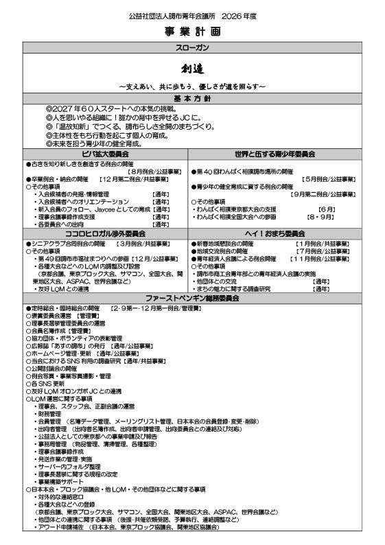 2026年度事業計画・予定